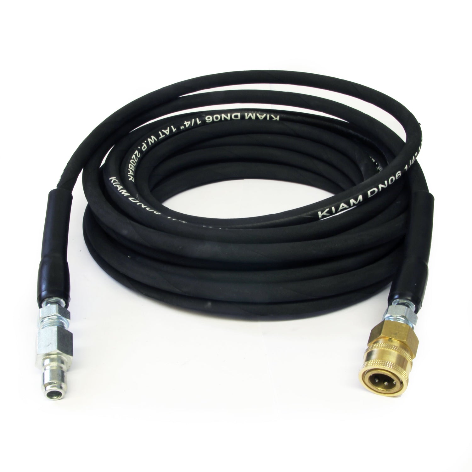 Note: Please ensure these connections are compatible with your machine and trigger gun. Make sure your pressure washer does not exceed the max pressure and temperature rating of the hose. (Fits KIAM, DTLR, Bigboi, Midi QR, & Hyundai to name a few)