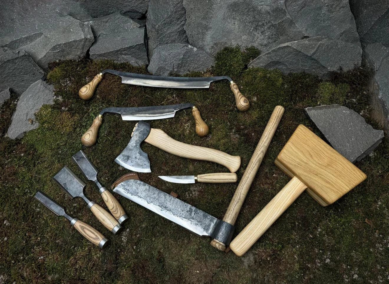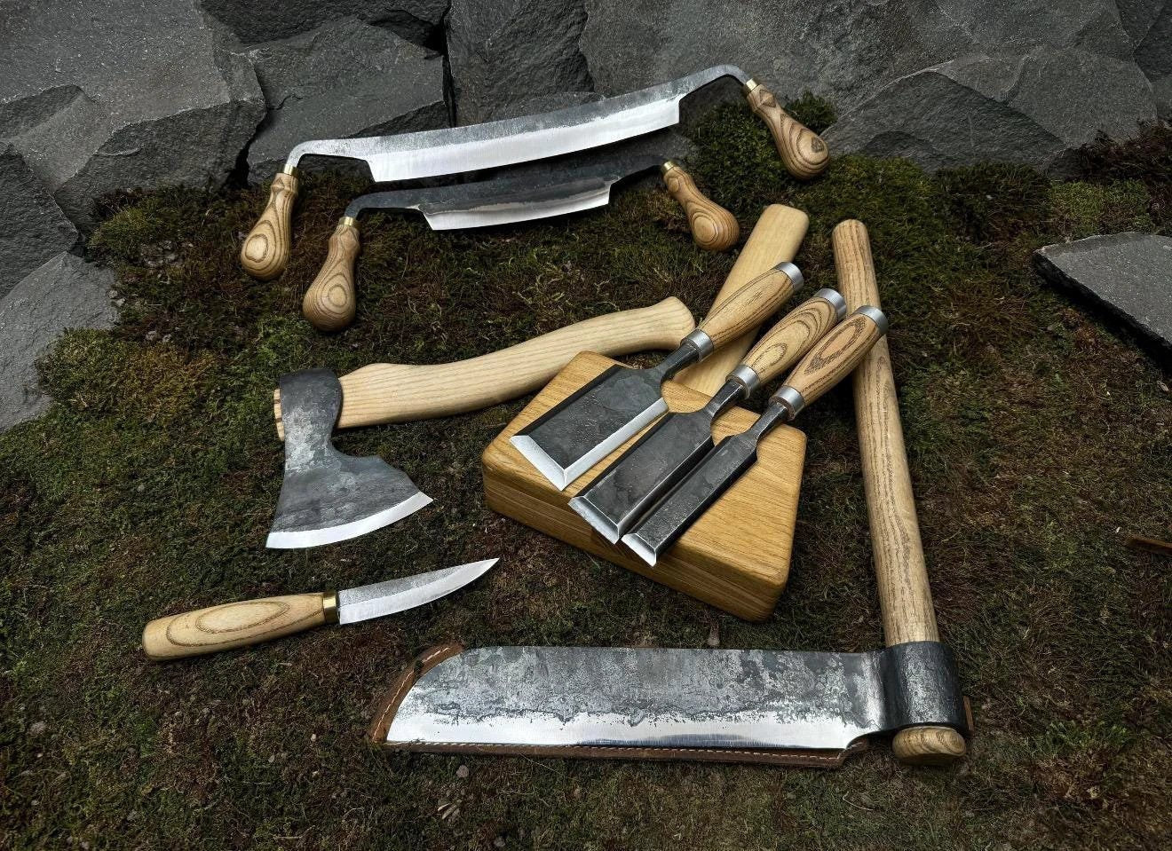 A dream gift for any woodworking enthusiast! This complete tool set includes everything from carving knives and chisels to a hand axe, mallet, and draw knives – all handmade with sharp high-carbon steel and natural wooden handles. Ideal for spoon carving, rustic woodworking, or bushcraft projects. A thoughtful and practical gift for Father’s Day, birthdays, or anyone who loves working with wood.
