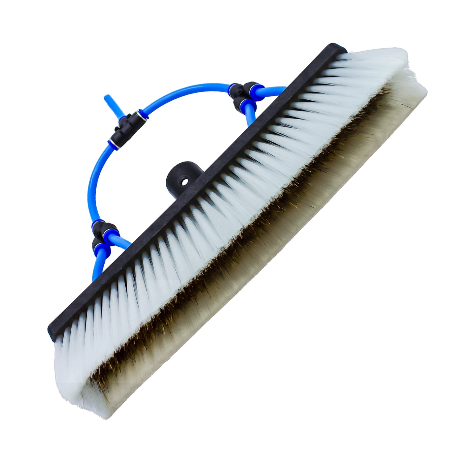 The Aquaspray® 31cm brush head offers a powerful combination of inner boars hair for aggressive scrubbing and outer DuPont bristles for a gentle, effective clean. This dual-bristle design ensures efficient removal of tough grime while protecting delicate surfaces, making it the perfect tool for professional window cleaners working on larger areas or challenging jobs.