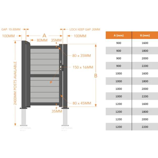 The RG-RMG002PG is a fully boarded pedestrian gate with a horizontal solid infill and flat top, providing full privacy with a modern and streamlined design.