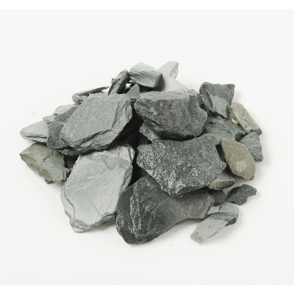 Elevate your garden's ambience with our Blue/Green/Plum Slate chippings, which are available in 20mm and 40mm sizes. Excellent green/grey colour layered slate pieces. They darken and shine when wet. Achieve the perfect garden design with our decorative gravel aggregates in a bulk bag, a minimum of 750kg. The ideal complement to rockery stones. It can be used as driveway gravel.