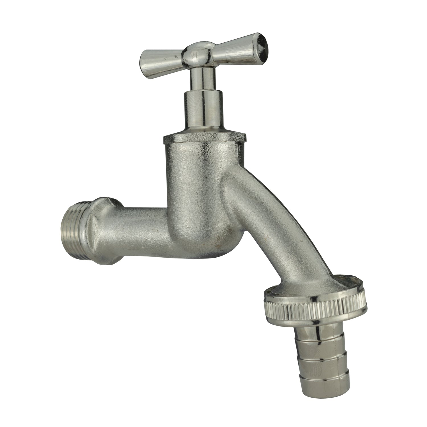 - 1 x Garden Bib Tap Brass Nickle Plated 3/4" BSPM Inlet Plastic Barb (GTBIB34B001CH)