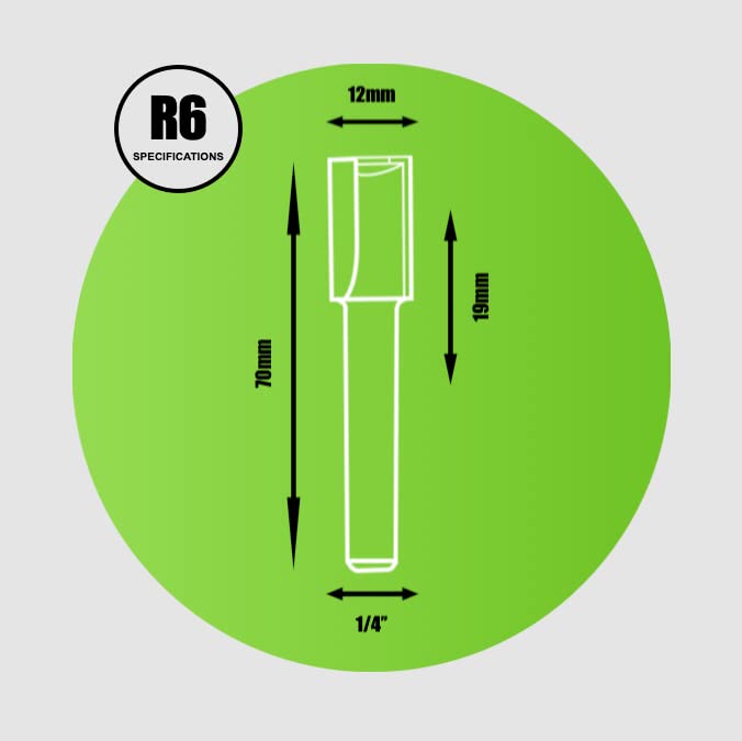 Straight Router Cutter 1/4" X 12MM X 19MM (70MM Long) - R6