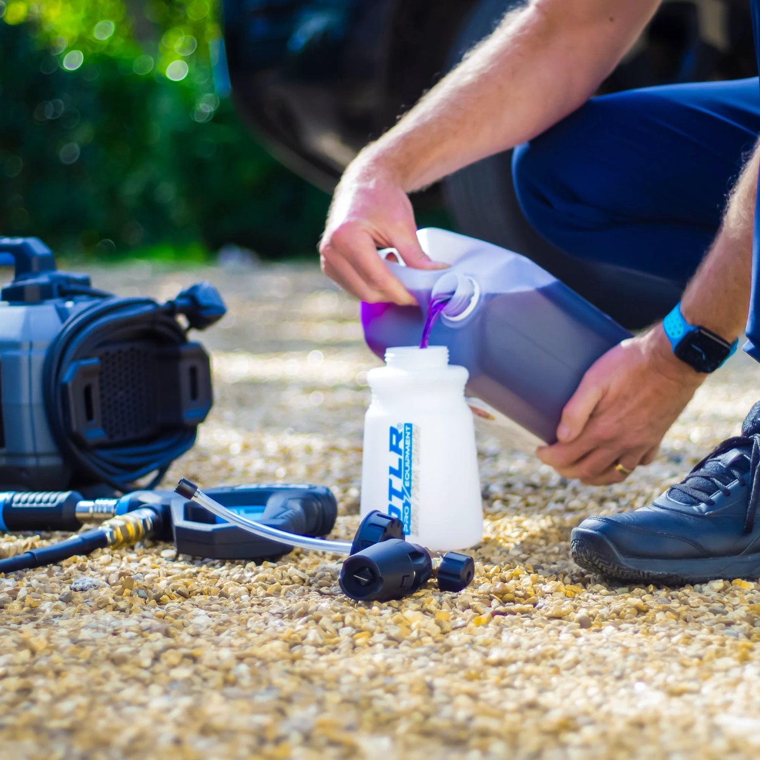 - Vehicle, caravan, and bike detailing with controlled, surface-safe pressure