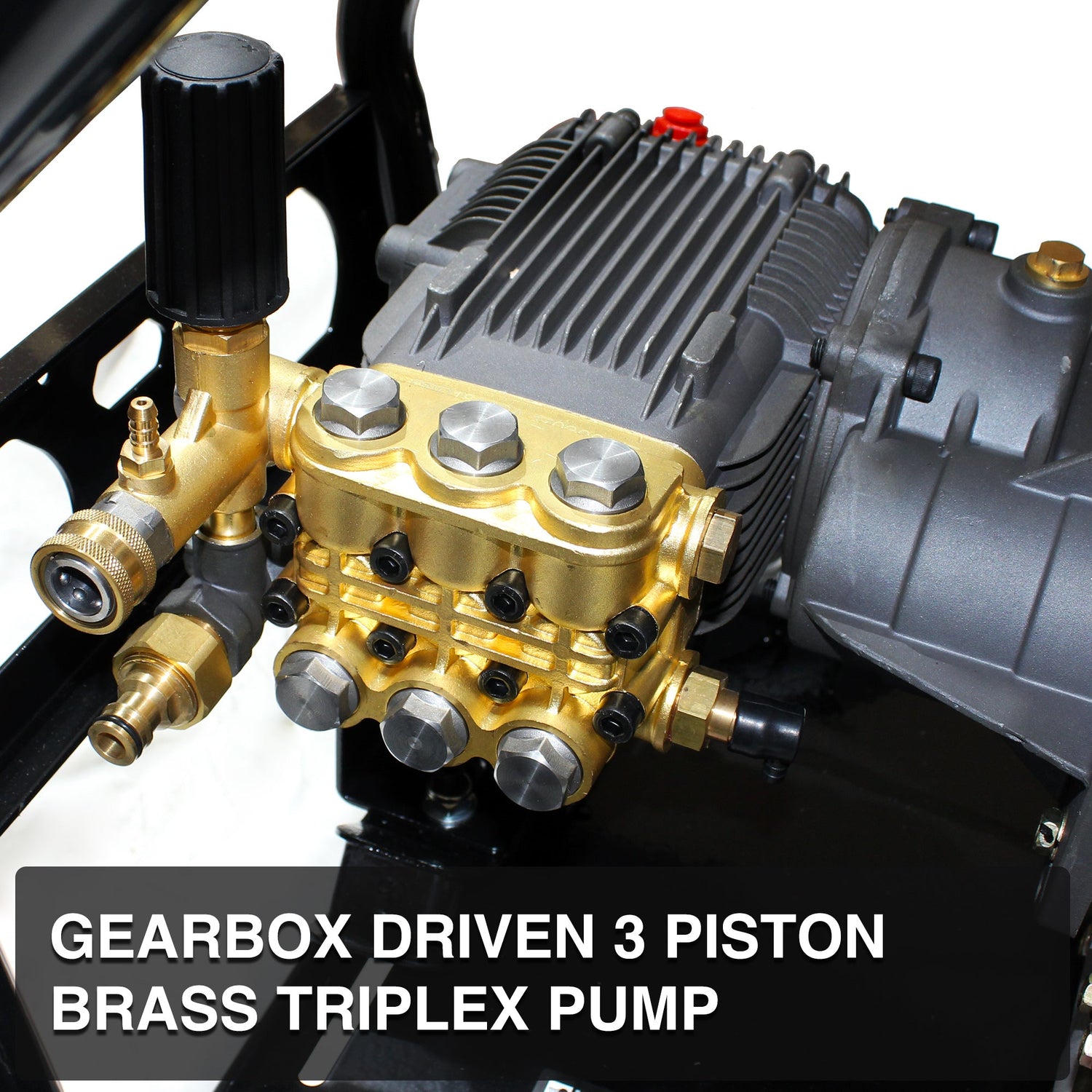 - Gearbox driven brass 3 piston Triplex pump with German Parker seals