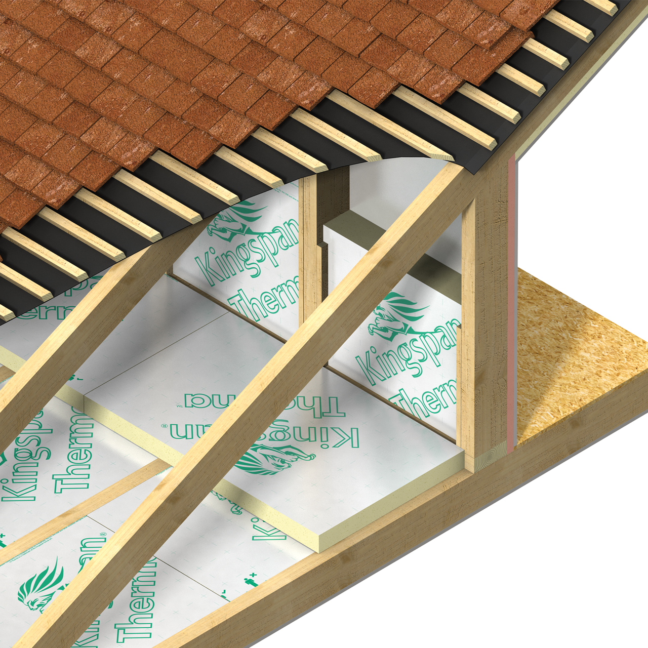 The Kingspan Thermapitch TP10 is a high-performance PIR insulation board designed for tiled or slated pitched roofs. Suitable for both new builds and renovations, TP10 helps maximise energy efficiency by reducing heat loss through the roof. With a thermal conductivity of 0.022 W/mK, Kingspan TP10 provides superior insulation for your home, saving on energy costs and enhancing comfort.