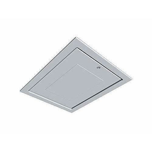 Prepare a 562 x 726mm opening in the ceiling. Remove the frame from the door and locate it squarely into the opening, fixing in place with the screws provided. Finally replace the door into the frame ensuring the hinge system is correctly located. Secure door by turning the door catch anti-clockwise.