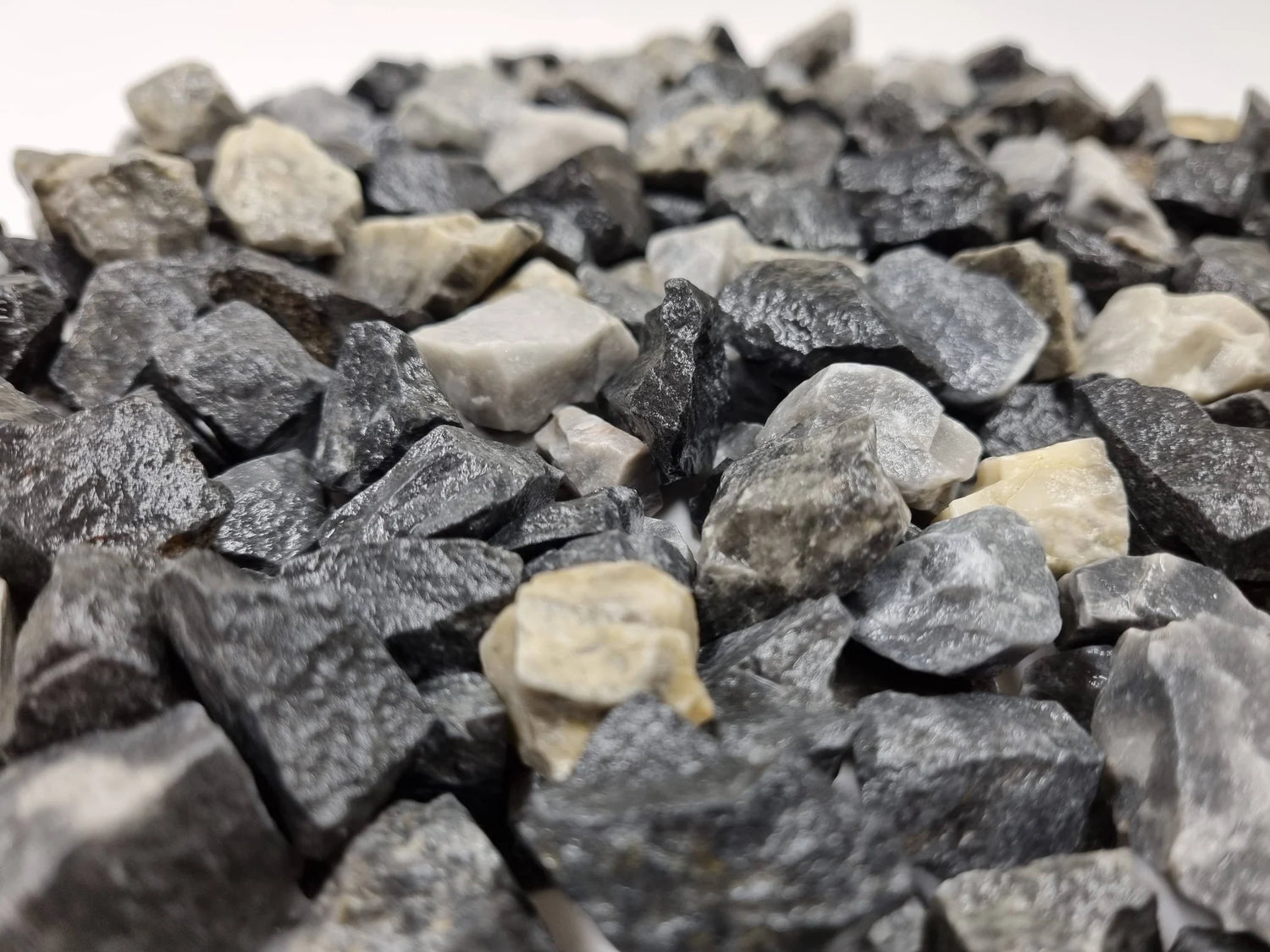 The Panda Gravel 20mm, a blend of black and white chippings, transforms garden paths, borders, and driveways with its striking appearance. Crafted from durable marble and basalt, these angular stones not only provide a stable surface but also add visual depth and texture to any outdoor space. Their size varies between 10-25mm, enhancing the ground with a rich, textured look. Remarkably, Panda Gravel gains an additional layer of beauty in the rain, shimmering and bringing the garden to life.