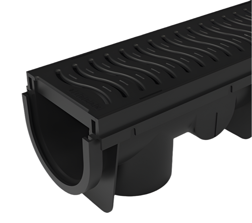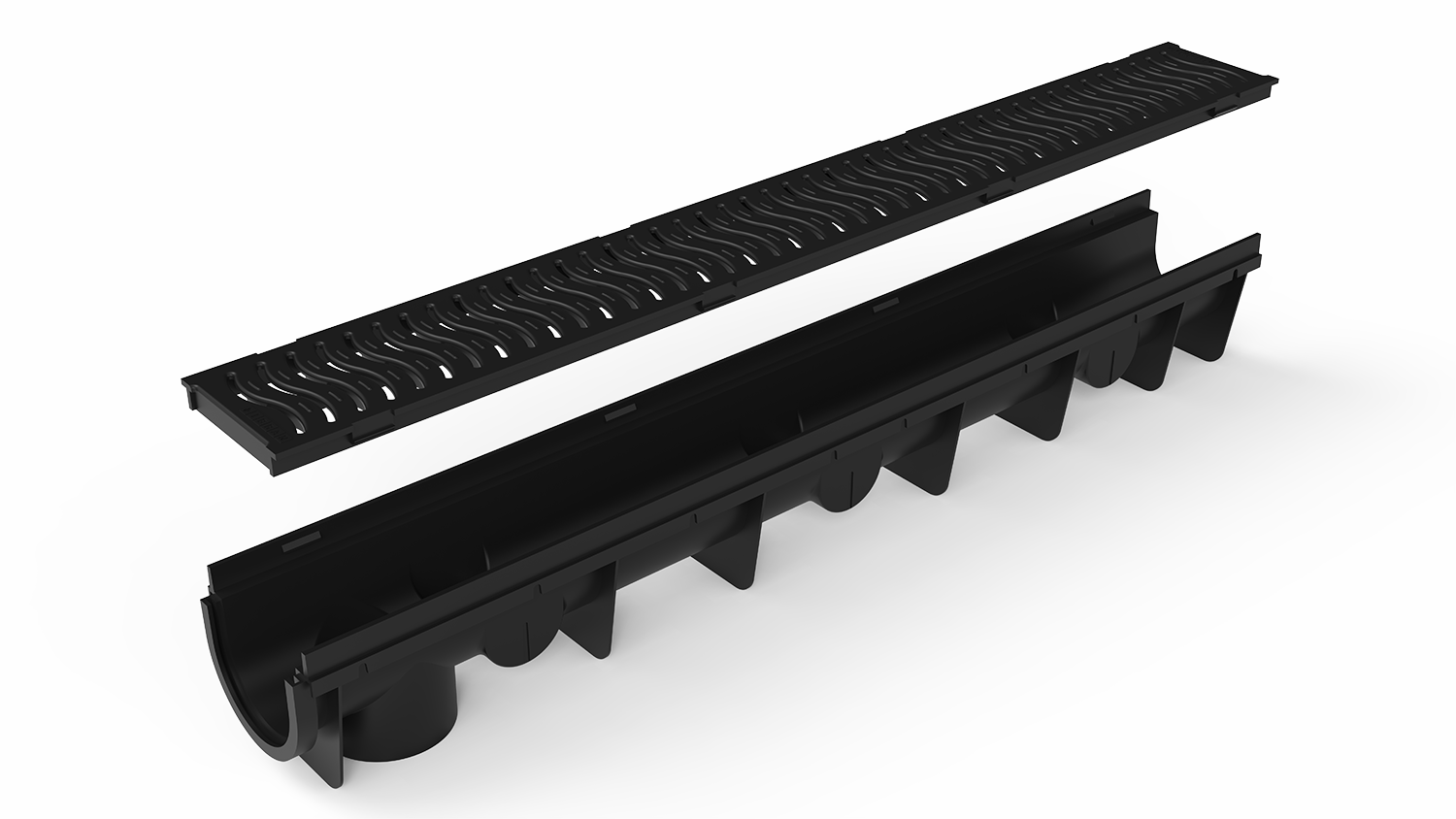 Our A15 load class channel drain is made from 100% recycledpolypropylenefor high strength andhigh durability. Our S-Drain Plastic Channel Drain A15 is designed with one main vertical outlet thatconnects directly to your underground drains. Both the S-Drain base and grate come in 1m lengths.