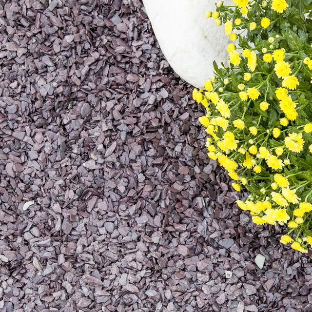 A gorgeous mix of flat and angular smaller-sized plum and blue slate, mini mulch is a by-product of our 20mm slate chippings. Sourced naturally from quarries, the product may require a simple rinse with water to get rid of the dust and for the plum and blue colour of the slate mini mulch to shine through. This gorgeous mini mulch aggregate is eco-friendly as it is a recycled by-product of the slate tile manufacturing process. Slate mini mulch can be used for pathways, ground cover and garden border edges. Due to the small size of the slate pieces, it is ideal for walking on. We do not recommend using slate mini mulch for driveways. Slate Mini Mulch Specification Colour: Blue and Plum Shape: Flat, angular Size: 2-14mm (as a natural product size may vary and this slate aggregate is not to be confused with slate dust.) Type: Slate Main Uses: Pathways, decorative ground cover, garden borders, edging and flower beds