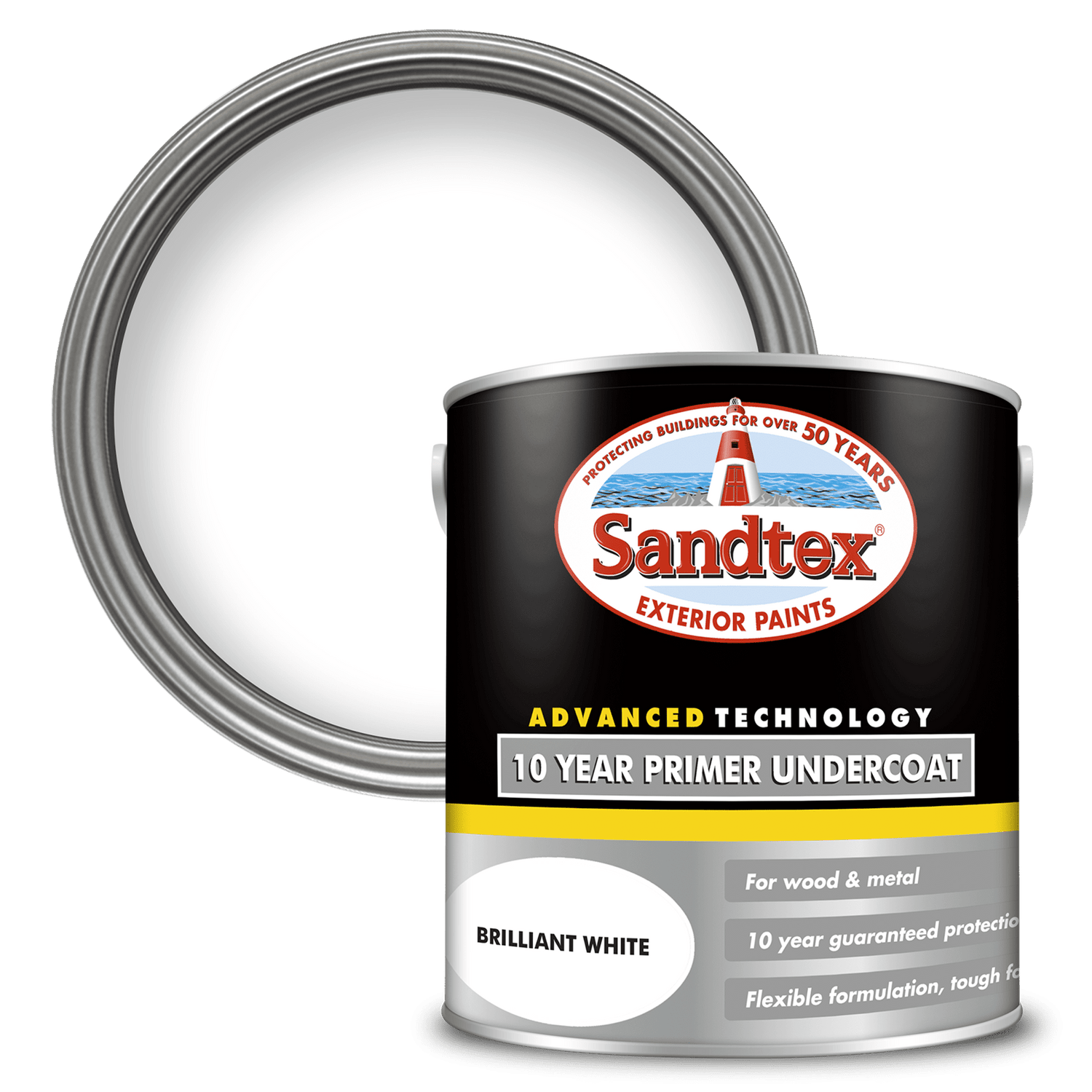 Sandtex 10 Year Primer Undercoat paint is a versatile exterior primer and undercoat designed to create a durable foundation for applying Sandtex® exterior gloss and satin paints. Offering trusted protection against the elements for a decade, it ensures a long-lasting finish. Ideal for doors, sheds, window frames, railings, and garden furniture, this product combines primer and undercoat in one, saving both time and money. It is flexible to resist cracking and peeling, available in two colours tailored to complement your top coat. Additionally, all packaging in the Sandtex® 10 Year Primer Undercoat range is fully recyclable.