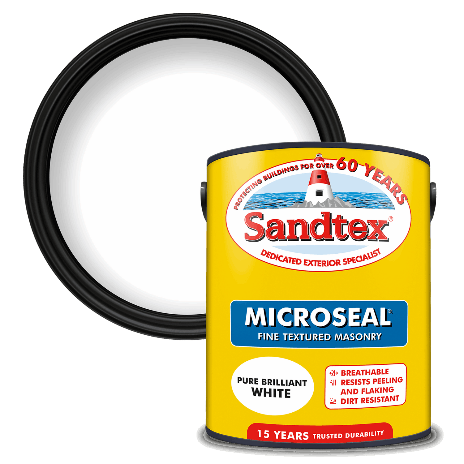 Sandtex 15 Year Microseal Fine Textured Masonry paint is renowned as a highly resilient choice for various surfaces including rendering, pebbledash, breeze block, concrete block, roughcast, and facing brick walls. It offers a robust, breathable finish that safeguards against mould and algae growth. This microporous formulation seals effectively, shielding against water while allowing the surface to breathe.
