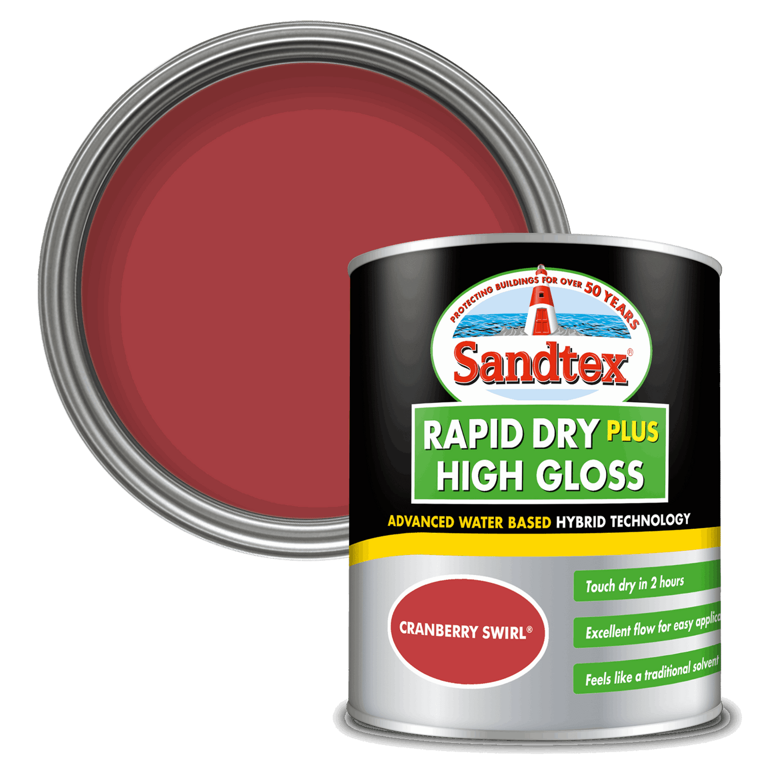 Sandtex® Rapid Dry Plus High Gloss features an advanced water-based formula that provides the durability and glossy finish typical of solvent-based paints, without the unpleasant odour and extended drying periods. It achieves a touch-dry state in just two hours, delivering a smooth, high-shine appearance ideal for doors, windows, gates, railings, and more. With a variety of colours available, it offers a convenient way to enhance your outdoor spaces swiftly. This versatile product adheres to exterior wood, metal, and PVCu surfaces.