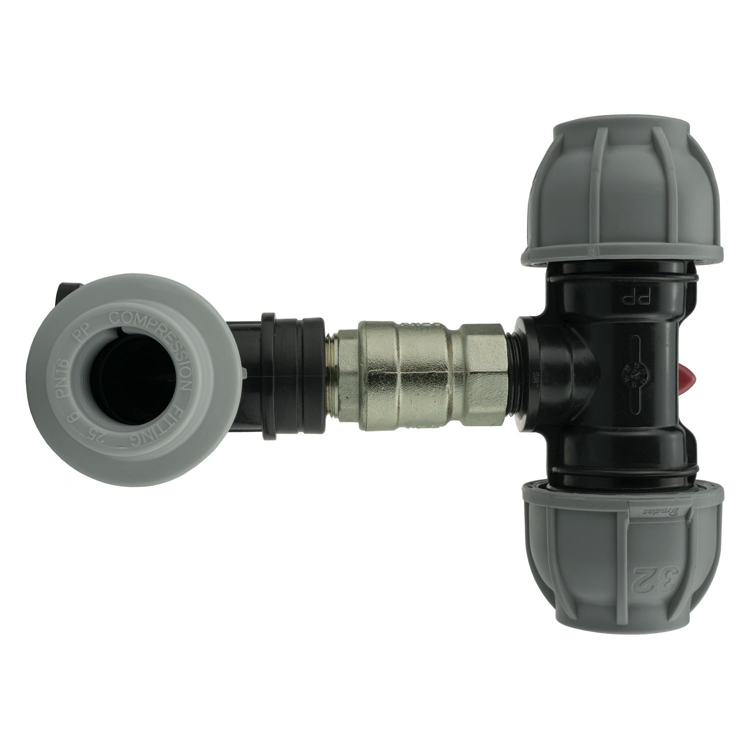 Wall Flange Kit 32mm MDPE + Lever Valve + 32mm MDPE Tee
